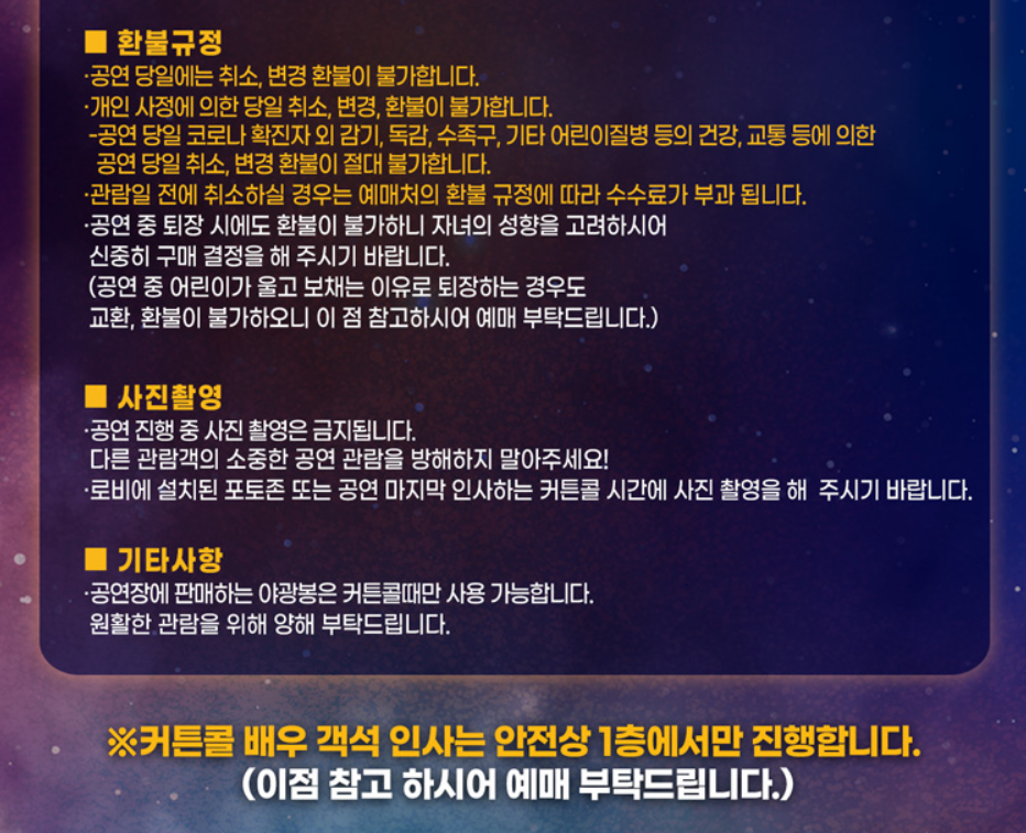 - (예매가능시간은 기획사의 사정에 따라 변동될 수 있습니다.)