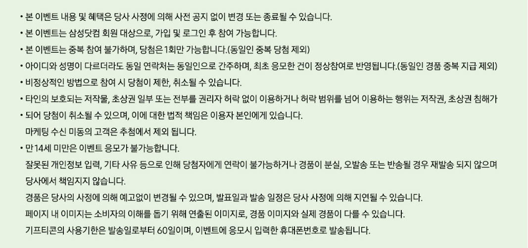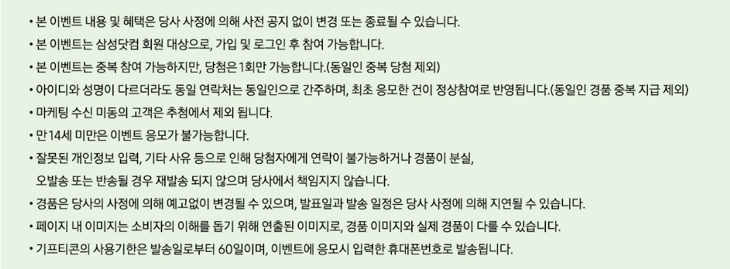 * 5만원 초과 경품에 대한 제세공과금(22%)는 당첨자 본인 부담