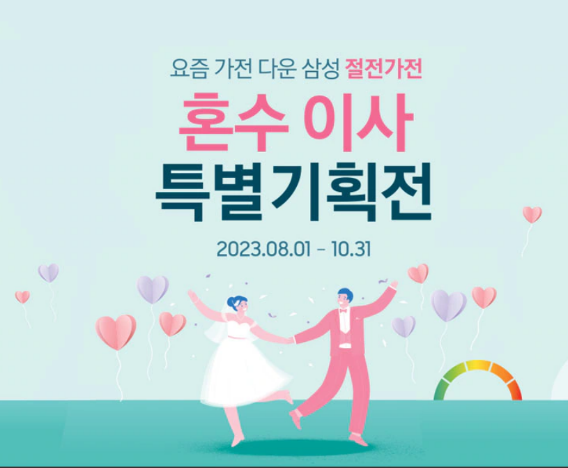 삼성전자에서 혼수 이사 특별기획전 이벤트 기간 2023-08-01 ~ 2023-10-31 구매고객 여행지원 이벤트, 퀴즈이벤트, smartthings 후기 이벤트를 합니다. 최대 500만원 마일리지 혜택과 참가자 추첨 모바일 스타벅스 기프티콘을 발송한다고 하니 아래에서 많은 응모하여 혜택 받아가세요.