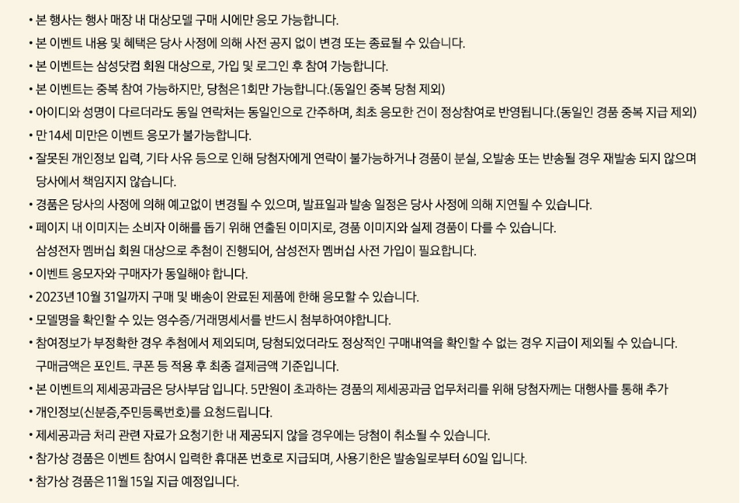 - 대상모델 구매 후 응모 고객 (10/31까지 배송완료된 고객에 한함)