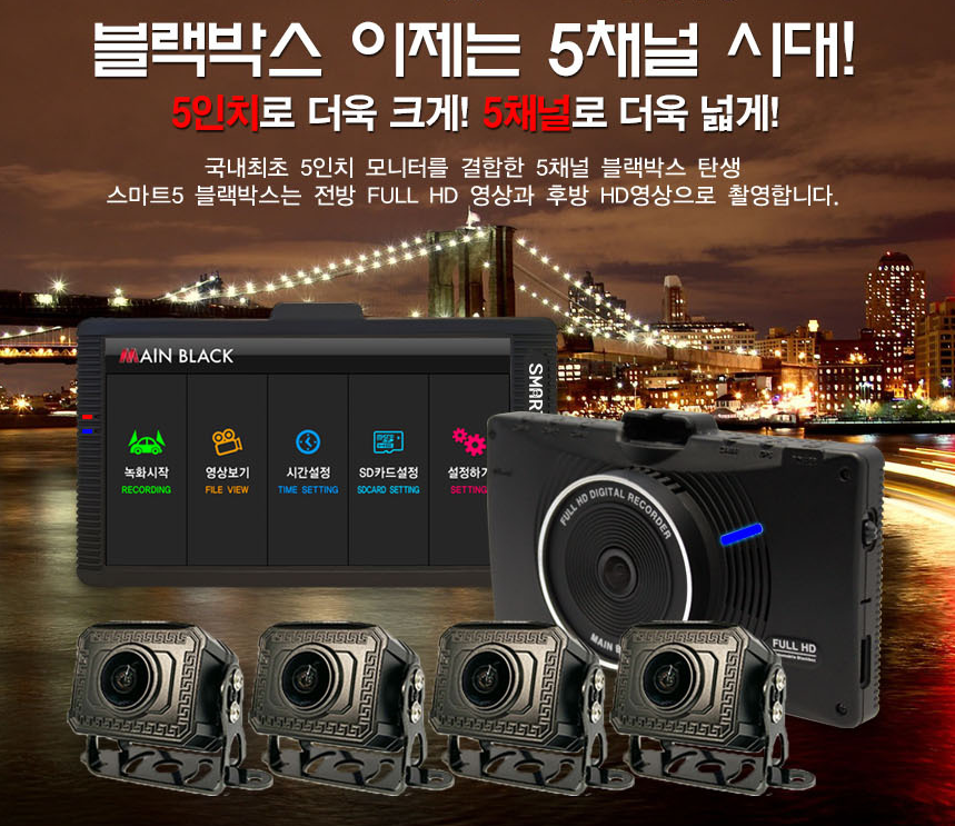 1. 5인치 FULL HD 나이트비전 후방 / 3채널 4채널 5채널 블랙박스 메인블랙 스마트5 FULL HD (제이텍)