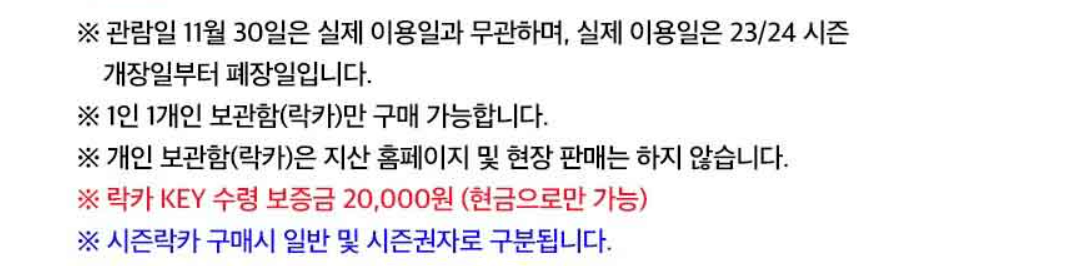 스키매니아들의 시즌! 스키를 사랑하는 사람들을 위해 시즌동안 23/24 지산리조트 스키 시즌락카(개인보관함) 특가판매를 한다고 합니다. 관심있는 스키 매니아분들은 아래에서 서둘러 예매하세요.