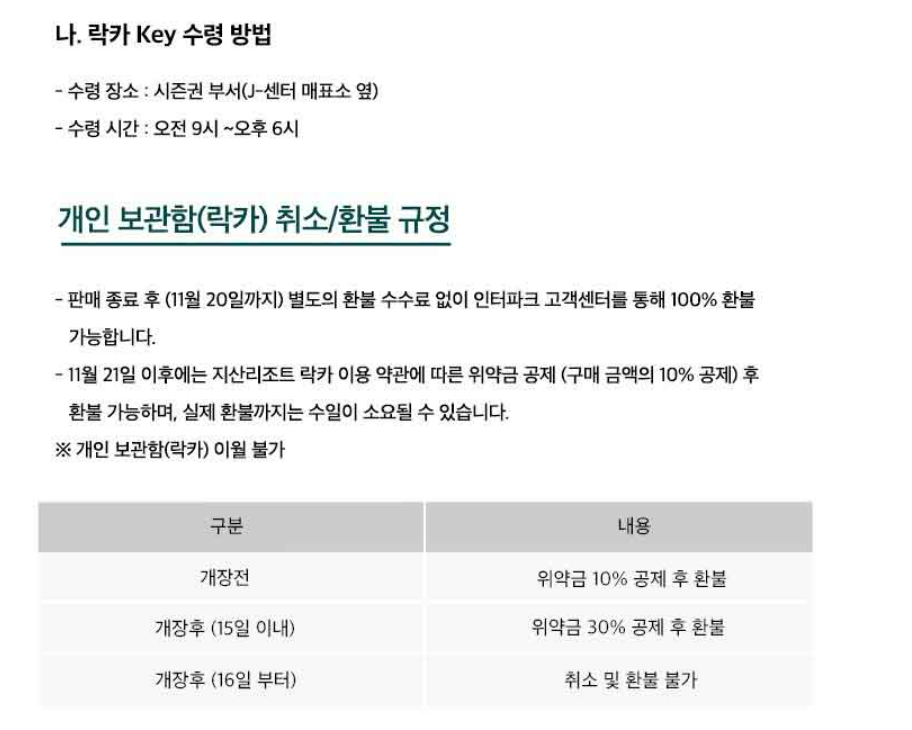 ※ 11월 20일 이후에는 지산리조트에서 지산리조트 자체 규정에 따른 위약금 공제 후 환불 가능하며, 실제 환불까지는 수일이 소요될 수 있습니다. (지산리조트 시즌권부서 : 031-644-1374~5)